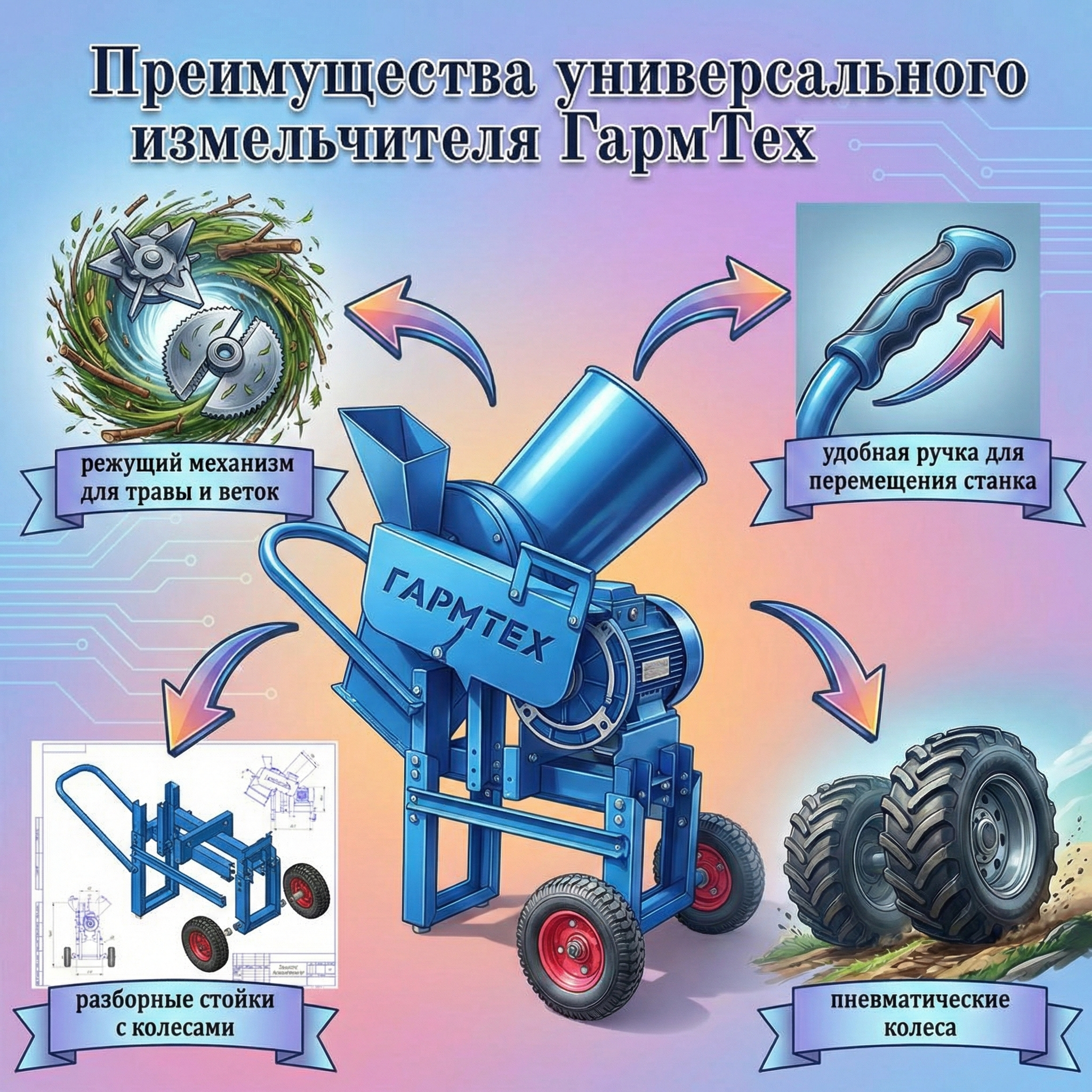 Почему выбирают эту модель: уникальная способность утилизировать мягкую органику. Большинство измельчителей пасуют перед влажной ботвой или свежей травой, превращая работу в постоянную чистку механизма. ГармТех перерабатывает всё.